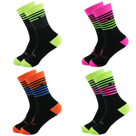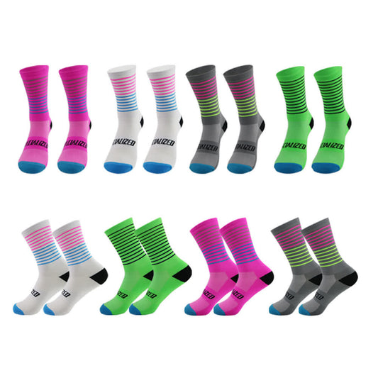 Stripe Print Cycling Quarter Compression Socks(4 Pairs)