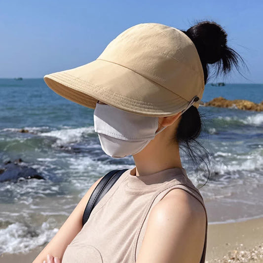 Leaf Print Large Brim Shawl Mask Sun Hat