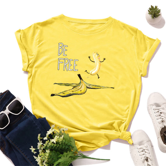 Plus Size Creative Banana Print Short Sleeve T-Shirt