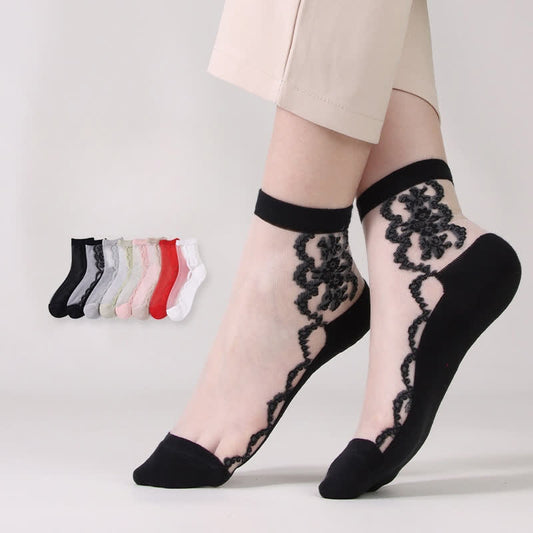 Ultra-thin Daisy Flower Sheer Ankle Socks(6 Pairs)