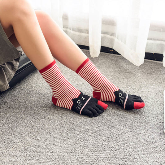 Striped Cat Quarter Alignment Socks(5 Pairs)