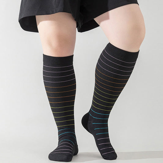Plus Size Colorful Pinstripes Compression Socks(3 Pairs)