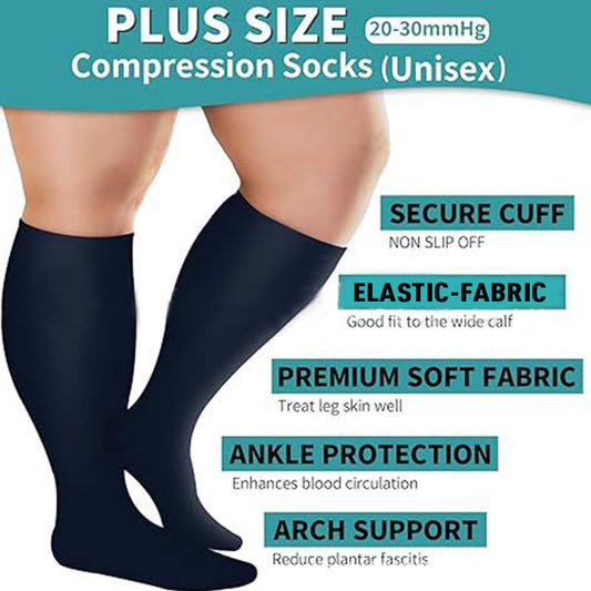 Plus Size Solid Color Compression Socks(3 Pairs)