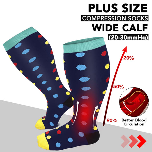 Blue Dot Heart Plus Size Compression Socks(3 Pairs)