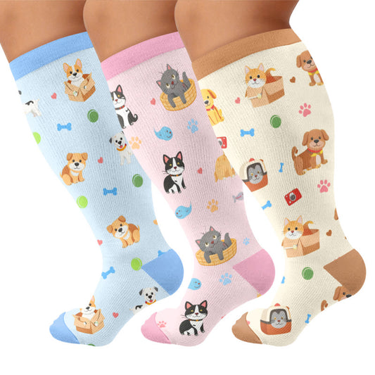 Plus Size Cute Pets Cartoon Compression Socks