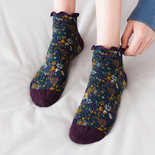 College Style Florals Ankle Socks(5 Pairs)