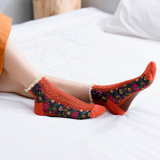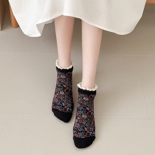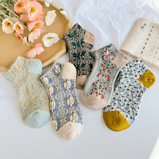 Retro 3D Relief Ankle Socks(5 Pairs)