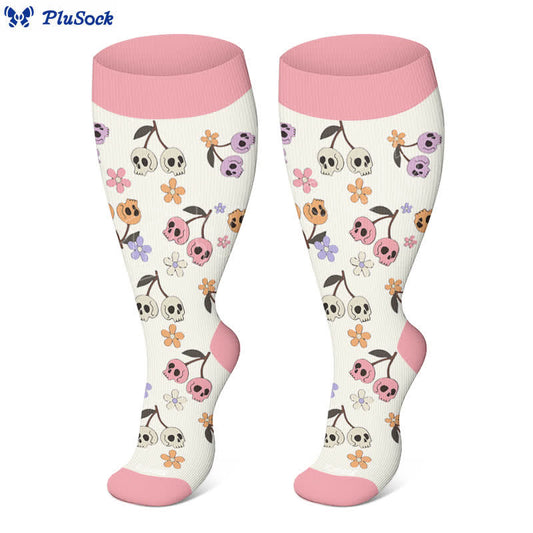 Plus Size Halloween Floral Skull Series Compression Socks(3 Pairs)