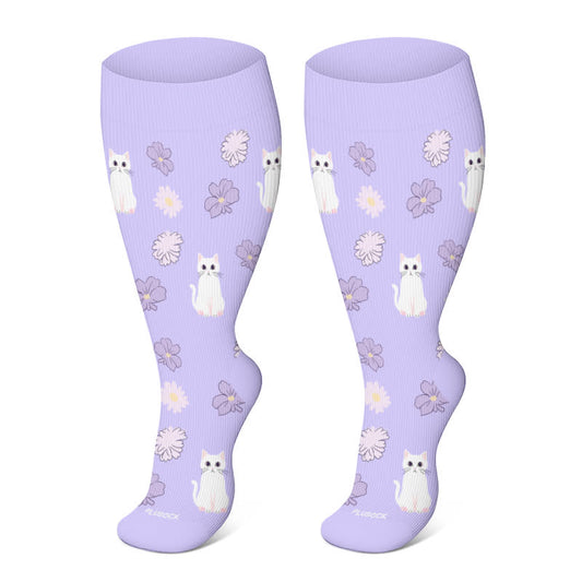 Plus Size Cat Flowers Compression Socks(3 Pairs)