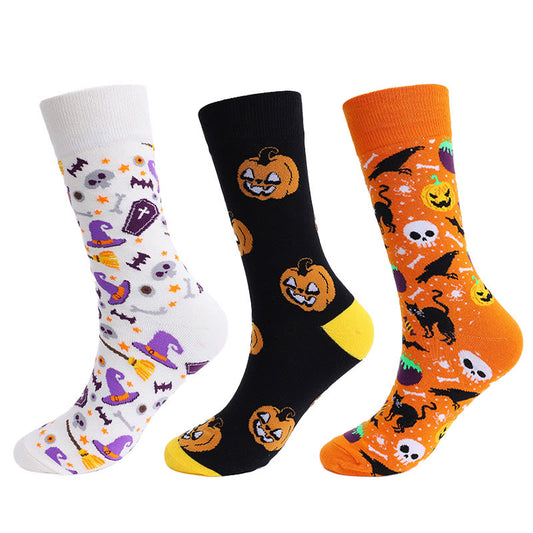 Plus Size Pumpkin Skull Halloween Crew Socks(3 Pairs)