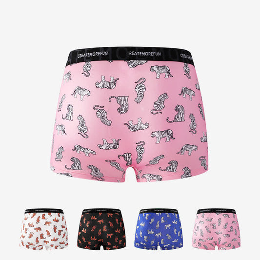 Tiger Print Men's Breathable Boxer Briefs(4 Packs)