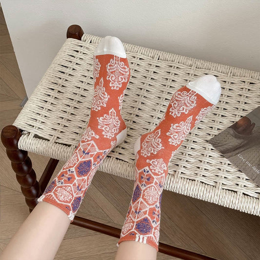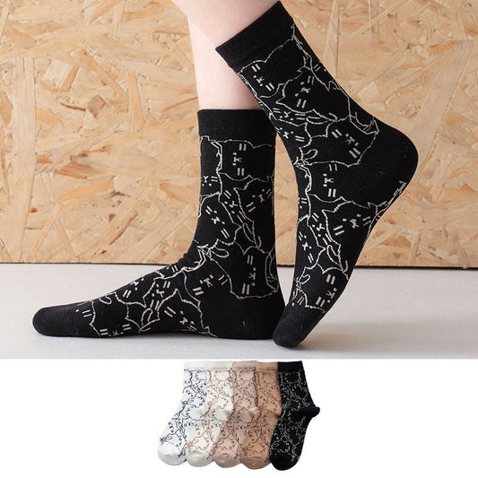 Retro Carving Flowers Quarter Socks(5 Pairs)